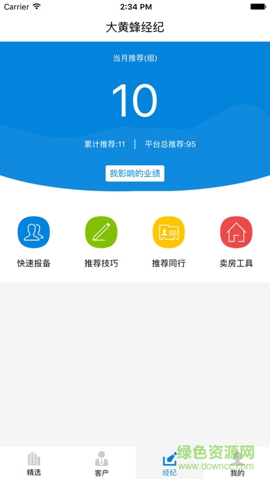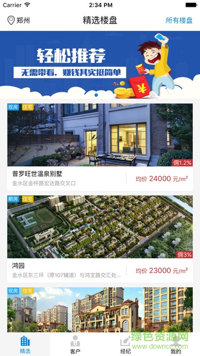 大黄蜂经纪app是一款供房产经纪人使用的房产和客户管理手机软件,房产经纪人可以在这里查看最新的楼盘资讯,可以对客户进行跟踪管理,可以和同行共享客源,欢迎有需要的朋友到绿色资源网下载使用!