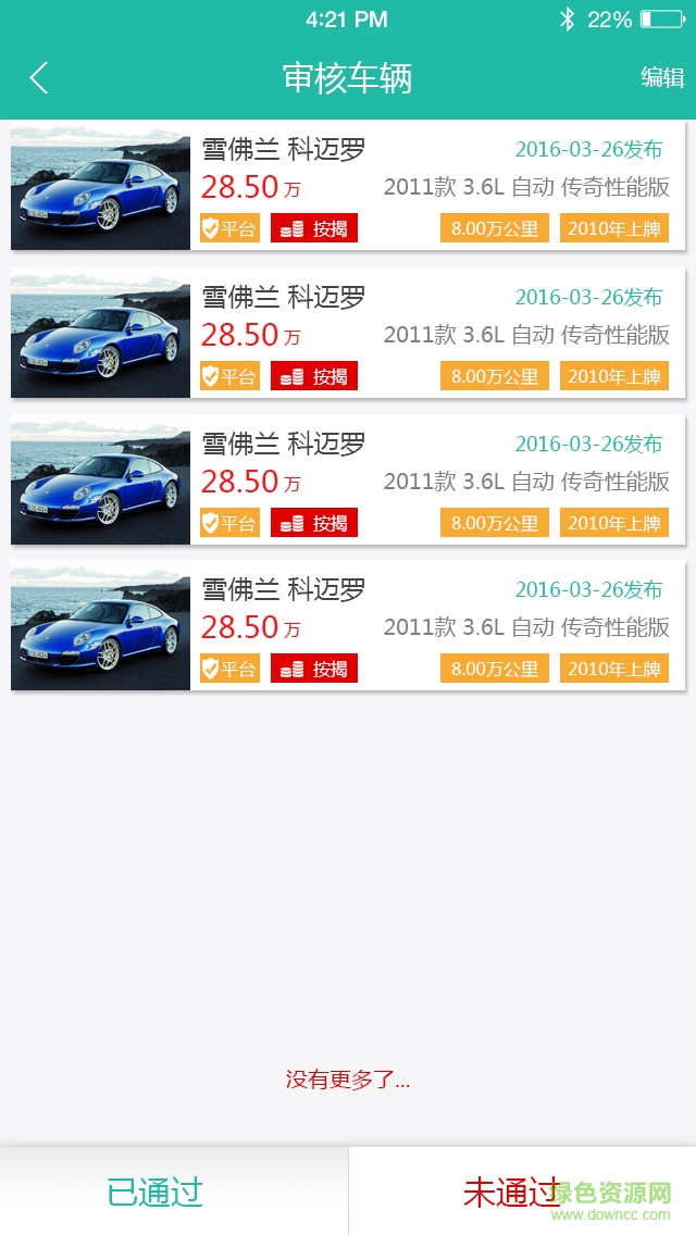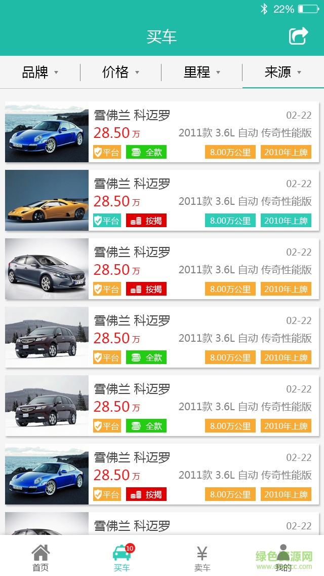全民二手车手机客户端是一个二手车网上交易平台,客户信心信息真实有保证,不用担心被骗。用户可以在网上将自己的二手车真实照片挂在网上等别人买,也可以在网上购买他人的二手车,都是直接交易,不会有中间商赚差价,实惠有保障,有需要的朋友就来绿色资源网下载吧!