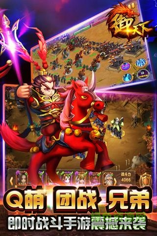 《御天下》中您将扮演一名胸怀宏图的王者,收集108名武将一起踏上征战天下的冒险之旅,是一款以三国为背景,结合神话传说,为您创造出一个三国征战与神话力量共存的神奇大陆。游戏以攻占城池为主线,搭配各类副本关卡,加上游戏中融合了多种玩法,包括武将养成,策略配兵,塔防建设,主城建设,9人实时组队游戏共同讨伐BOSS等,您不仅可以收集并培养三国故事中身担传奇色彩的各色武将,还可以与好友比拼,一较高下。以热血和豪情书写一腔凌云壮志,以智谋和勇略共创一段星火传奇,尽在《御天下》!