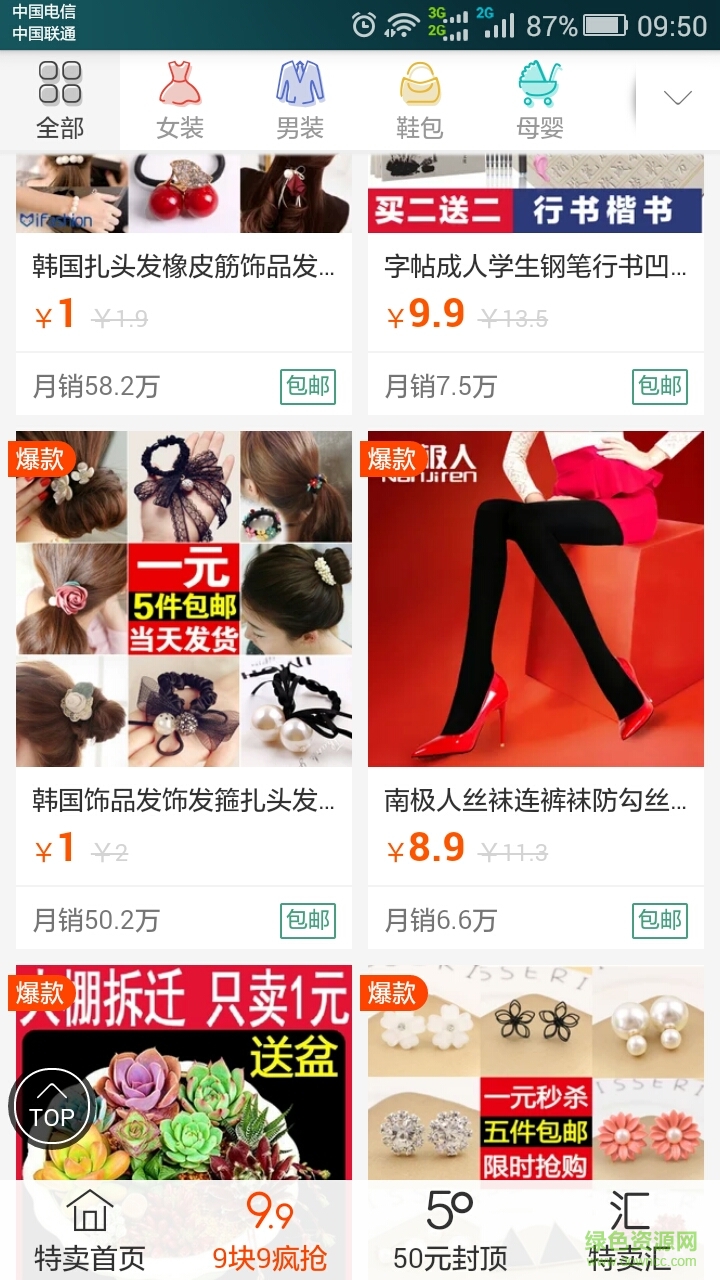 7、每天千余款9.9元包邮商品推荐,数码、男装、女装、家居、母婴、鞋包、配饰、美妆、美食、娱乐、电影,藏不住的诱惑就在九块九包邮!