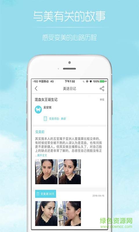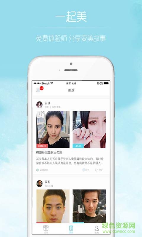 只记录专属于你自己的美丽蜕变,图文并茂展现你的变美过程,分享你变美前后的心路历程。你也可以参与到别人的美途故事中,按赞与分享,将变美秘籍分享给更多爱美的人,让大家一起美下去。