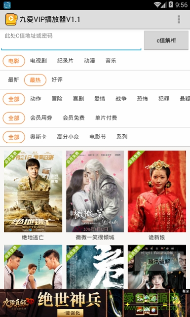 九爱微视手机版是一款功能强大的视频播放器,涵盖了电视直播、爱奇艺、优酷、芒果tv等各大网站的视频资源,更新速度非常快,无需vip账号登录即可免费观看,并且无广告无插件,非常好用,喜欢的朋友欢迎来绿色资源网下载!
