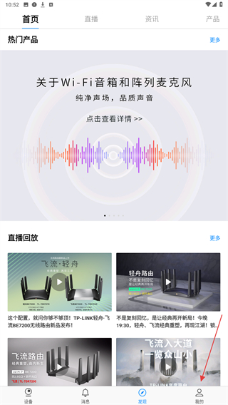 1、启动tplink物联APP,在首页底部点击我的按钮。