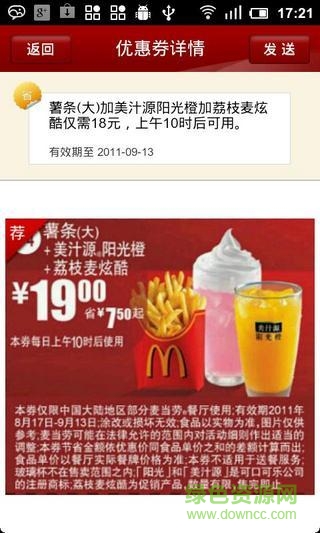 美食优惠券,让您随时随地乐享优惠!麦当劳、肯德基、汉堡王、赛百味棒约翰、必胜客、真功夫、东方即白DQ、满记甜品、美仕唐纳滋、釜山料理……全国12家超人气连锁餐厅,超过100张精选优惠券,折扣不断,实时更新。