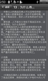 针对高血压这一常见病,以问答的方式详细地讲解了与高血压发生有关的危险因素,通过改变不良的生活方式和药物防控高血压的方法,以及高血压病情监控等方面的知识。软件以高血压为主线,融合了冠心病,血脂异常、糖尿病等相关疾病的防治知识,从饮食、运动、烟酒、减肥、心理等多个方面,向用户展示了一种全面而健康的生活方式,对于减少高血压的发生和危害、促进公众生活质量的提高有较好的指导作用。