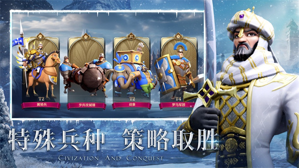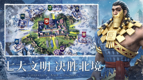 《文明与征服》是一款由广州四三九九信息科技有限公司制作的融合rts元素的多文明战争策略手游。游戏以中世纪为背景,玩家扮演着被背叛的王国继承者,可以选择6种不同文明(持续更新中),建造并升级自己的城市,通过收集资源、研究科技、强化军队,征服周边的城邦和关口。玩家还可以招募各时空下各文明的英雄,作为自己的军队将领对敌人发起进攻,也可以集结联盟成员,对王国发起最终的决战。