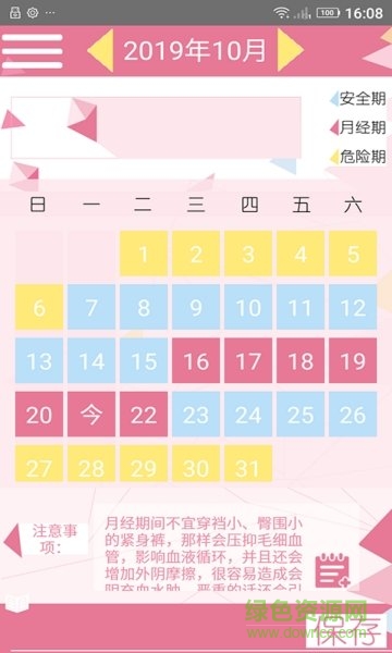 1.记录月经期日期,我们自动帮您推算大姨妈月经期、排卵期以及易孕期。