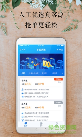 一键抢单:全人工审核,贷款真需求真客源,独享高质量客源订单;