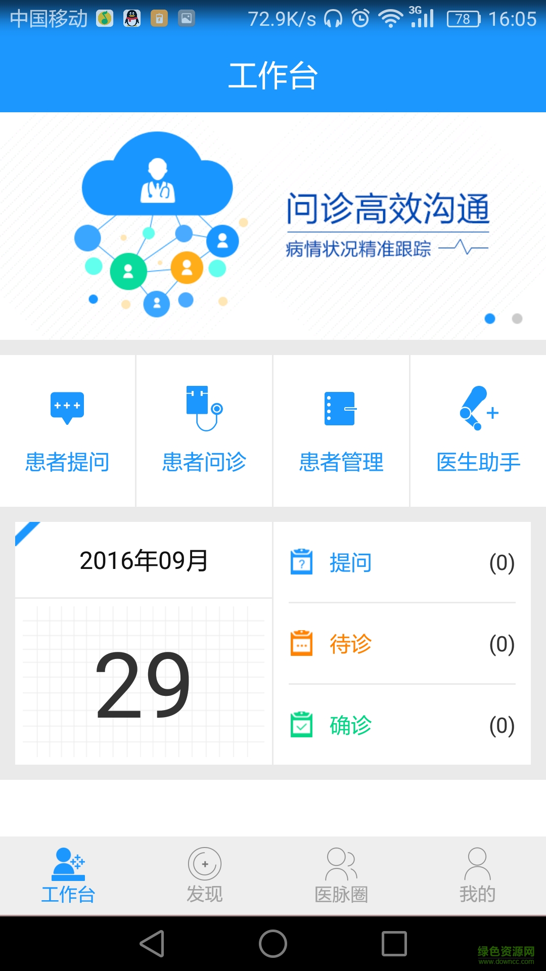 3.问诊:内含分诊中心、热门提问和我要问诊功能,患者可通过分诊中心与分诊人员进行及时的交流沟通;