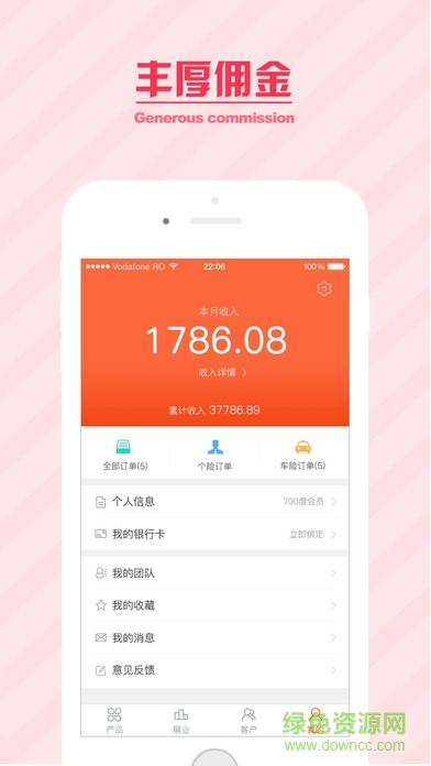 700度app是由700度保险网推出的一款保险服务手机软件,主要供保险从业人员进行使用,保险业务员可以在这里管理自己的客户,轻松查找保险产品,还有丰厚的佣金等你哦,喜爱的朋友赶快下载体验吧!