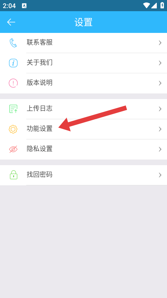3、在设置的界面,需要点击功能设置选项,进入功能设置的页面。