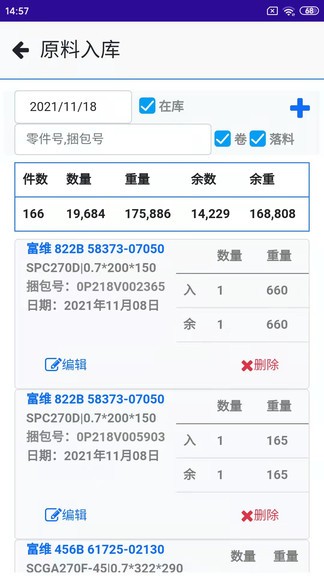 会友冲压软件手机版可以查看详细的排产信息,支持在线进行产品入库管理,可以进行原料入库的录入,可以进行加工查询,可以通过捆绑号以及零件号来进行原料的查询,欢迎感兴趣的朋友下载使用!