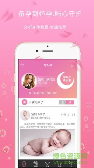 慧妈宝app是一款为新人妈妈打造的手机软件,在这里妈妈们可以了解到全方位的育儿知识,还有移动商城可以随时购买所需商品,是一个新人妈妈们可以分享交流的应用平台,欢迎有需要的朋友下载体验。