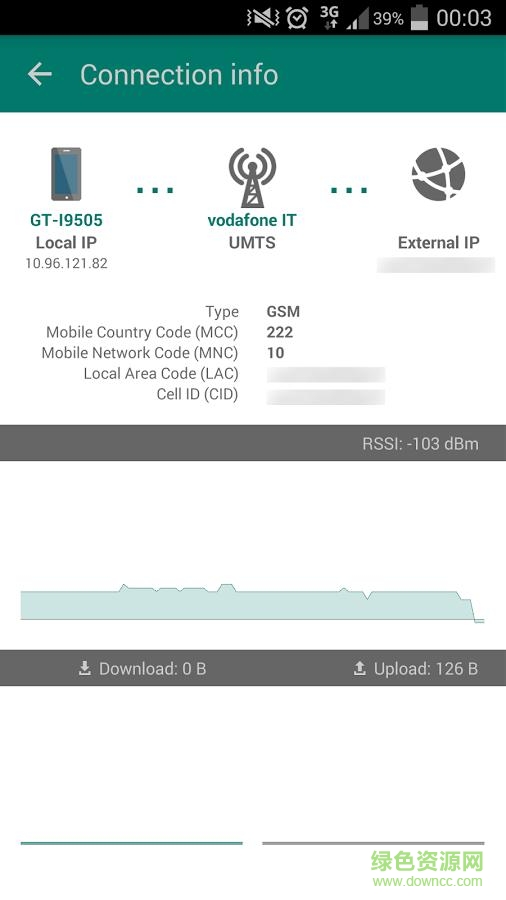 - 显示有关移动服务提供商(外部网络,信号强度,下载和上传速度,CID,LAC,MCC,MNC)的信息。