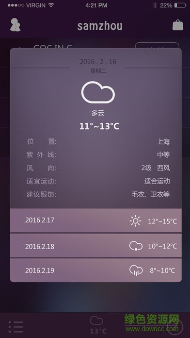2.通过app天气预报的功能,在下雨天或紫外线强烈时,提醒带伞。