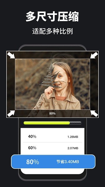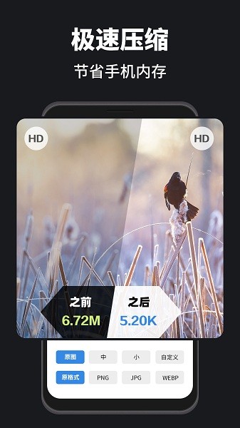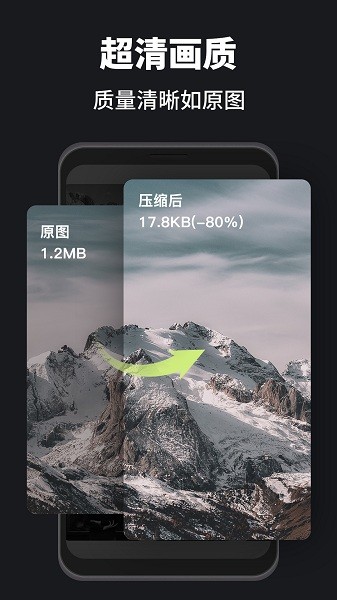 无损图片压缩:AI智能压缩图片,保证照片清晰度下超高限度压缩图片体积、缩小照片,支持实时预览图片压缩后的效果,一键保存;
