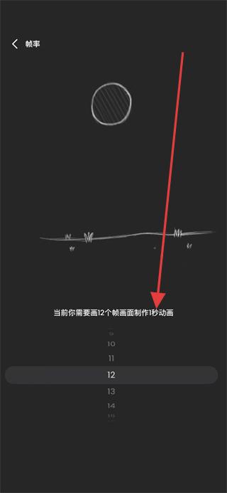 4、在帧率选择页面,根据每秒所需帧数,结合要制作10秒动画的需求,点击创建项目,随后开始绘制每帧画面,完成10秒动画制作。