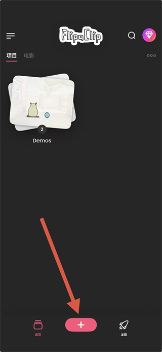 1、打开Flipaclip应用,在主界面点击底部中间的加号按钮,准备创建新动画项目。