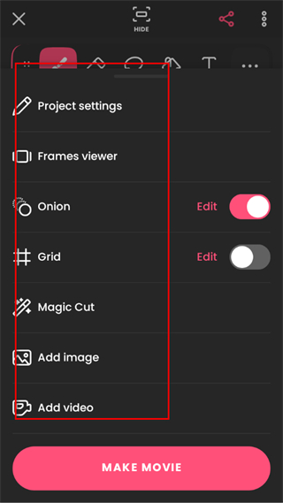 3、点击工具栏的更多选项,可进行项目设置、添加图像、添加视频等操作,丰富动画内容。