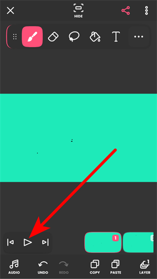4、通过逐帧绘制画面,点击底部播放按钮预览动画效果,不断调整完善,即可完成FlipaClip的动画制作。