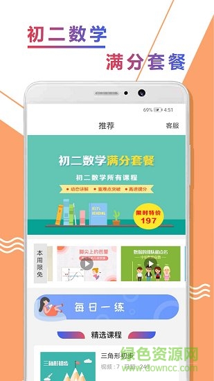 初二数学精讲是一款专为初二学生制定的数学学习app,初二时初中学习的一个过渡阶段,经常跟不上老师课程,课后做题比较困难,初二数学精讲,涵盖了初二所有的学习课程学习,对你的学习知识查漏补缺,感兴趣的朋友就来绿色资源网下载安装吧