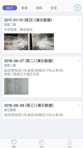 把病例、化验单、体检单记录在手机上,通过云存储,一个账号可管理全家人的健康状况,病历永不丢失。