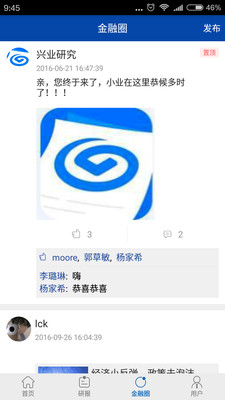 4、金融圈:参与热门话题讨论、分享个性化的观点、与圈内好友互动交流。