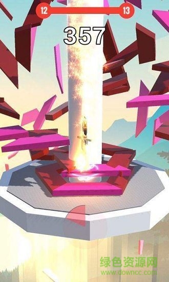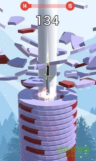 1.简洁的3d卡通风格,享受魔性的游戏模式,旋转塔楼帮助利刃不断下降