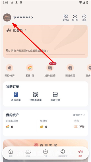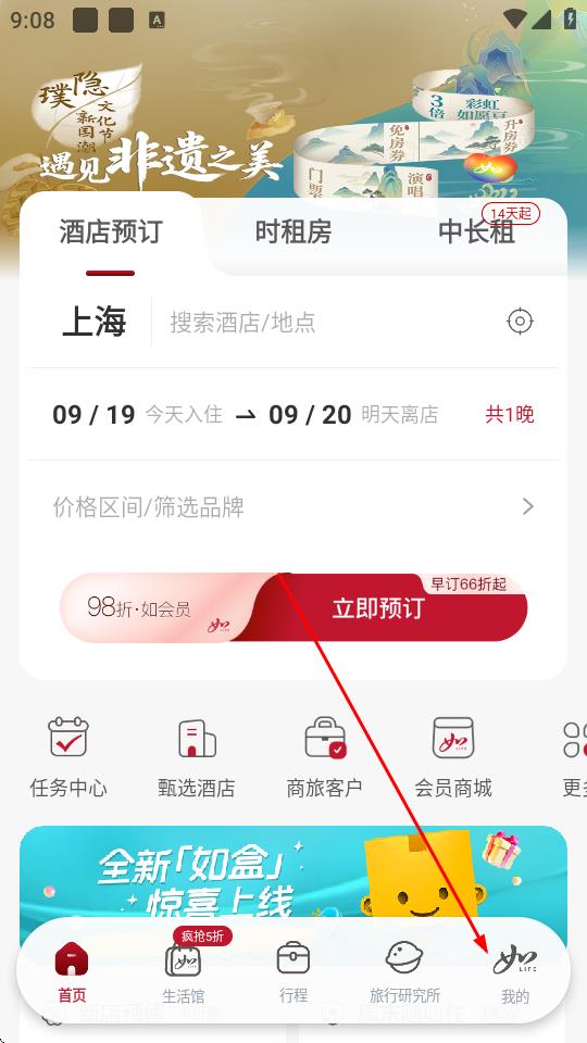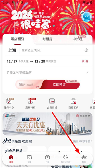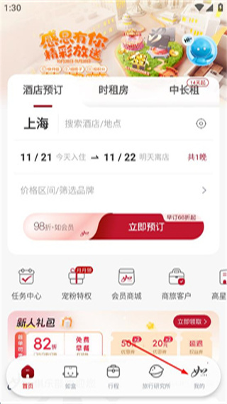 1、打开首旅如家APP,点击底部导航栏中的我的。