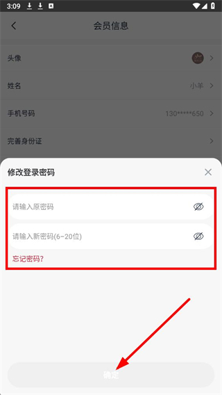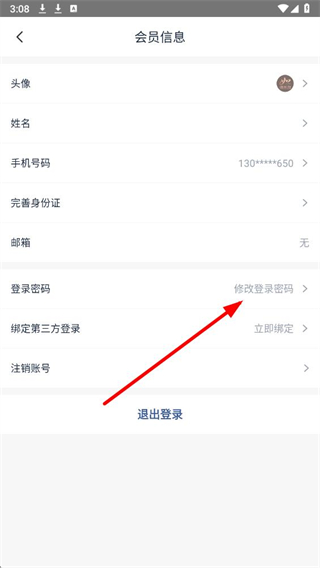 3、在会员信息页面,找到修改登录密码选项并点击,弹出密码修改窗口。