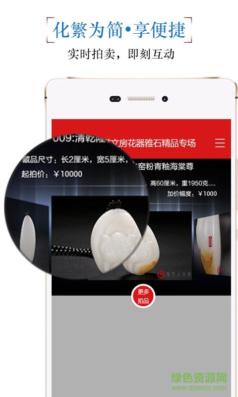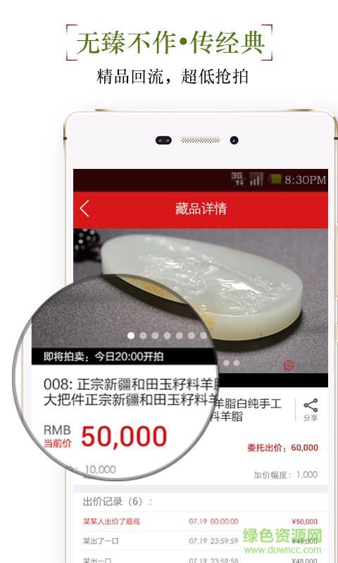 1.拍品详情:随时查看清晰的拍品大图、简介、出价记录、付款详情等;