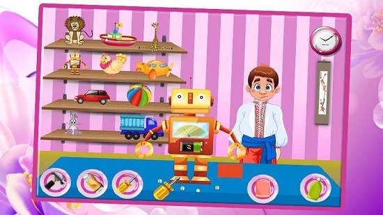 公主玩具制作游戏安卓版中玩家可以制作和修理各种玩具,玩具种类丰富多样,小汽车、机器人、玩偶、小动物等玩具一应俱全,将损坏的玩具进行修复和改造,维修工具多多,玩法逼真,可以锻炼孩子的动手能力,喜爱的朋友赶快下载体验吧!