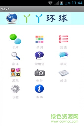 丫丫环球app是一款专门为安卓用户打造的语言类学习应用。这款软件包含的单词、语音等等非常的丰富而且广泛,不仅适用于小孩子,还适用于大人。并且拥有各国不同的语言,还能与它对话来练习口语。感兴趣的朋友赶快来绿色资源网下载吧!