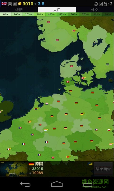 文明时代欧洲版(Age of Civilizations Euro Lite)是一款策略游戏,游戏的画面以地球的版图为基本背景,映衬了有些主题,玩家在这里可以自由在欧洲图上选择你的国家,然后对开始建设你的国家,玩家可以在这里发行一系列的政策,来帮助你的国家经济快速上涨,稳定周围边的环境,到你的国家足够强大你也可以对其他国家发动战争,掠夺他们的资源,直至称霸全球,喜欢呢就赶快和朋友们一起下载吧。