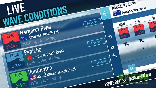 3.实时海浪预报数据提供支持。数据全天更新,包括膨胀高度,膨胀方向,风,潮汐和水温。通过在您最喜爱的冲浪场发起'完美风暴'来加强动力。