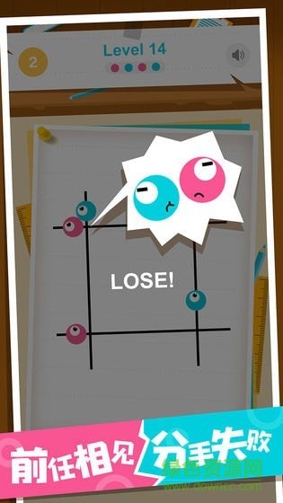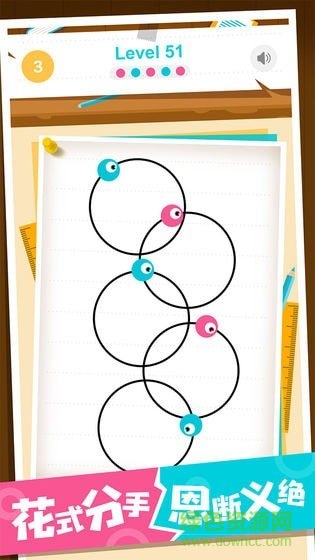 分手球球游戏是游戏画风简洁,游戏玩法别具创意的游戏。有一天,你和你的女友分手了,你们发誓彼此不再相见。游戏中,你只要不让两个小球碰到就算过关,两个颜色形成鲜明对比的球球在各种不同形状的轨道上运行,你要通过不断的失败来调整它们的位置,以确保顺利过关。