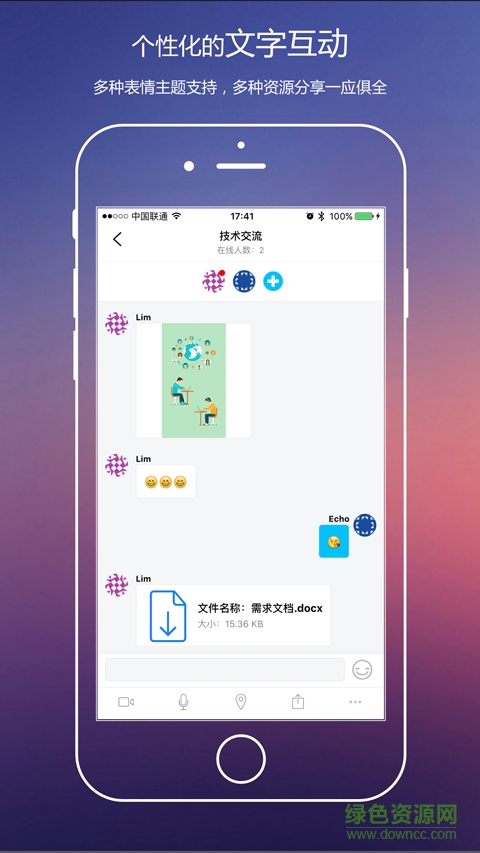 ——个性化的文字互动,多种表情主题支持,多种资源分享一应俱全