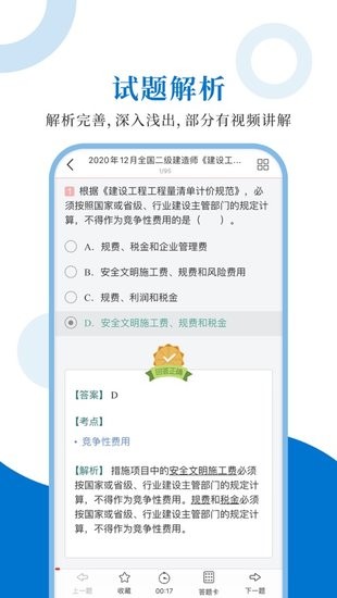 专为二级建造师考试精心准备的考试配套题库,每一道试题都有答案解析,为考试提供了充分的复习准备,可随时随地学习练习,支持手机、平板多端同时使用。