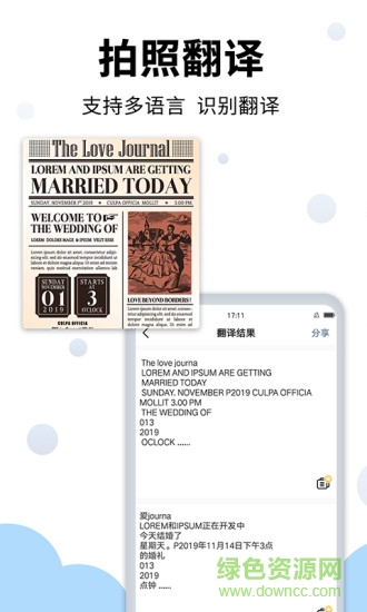翻译-拍照翻译,强大的OCR文字识别技术支持支持多种语言的全文互译,无需打开翻译app,直接调用扫描识别;