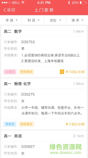 优思家教教员版是专为大学生打造的线下家教订单管理产品,通过该产品,审核通过的学生能够查看到所有上海市家长申请的家教订单,并根据自己的情况选择接单或是拒绝。