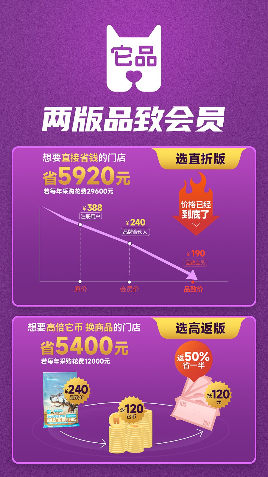 它品,最大限度绕开中间商盘剥,联合上游厂家打击市场乱价,保障合作方利益; 为宠物店打造专属微商城,并提供代运营服务;施行区域保护,减少合作方竞争风险。