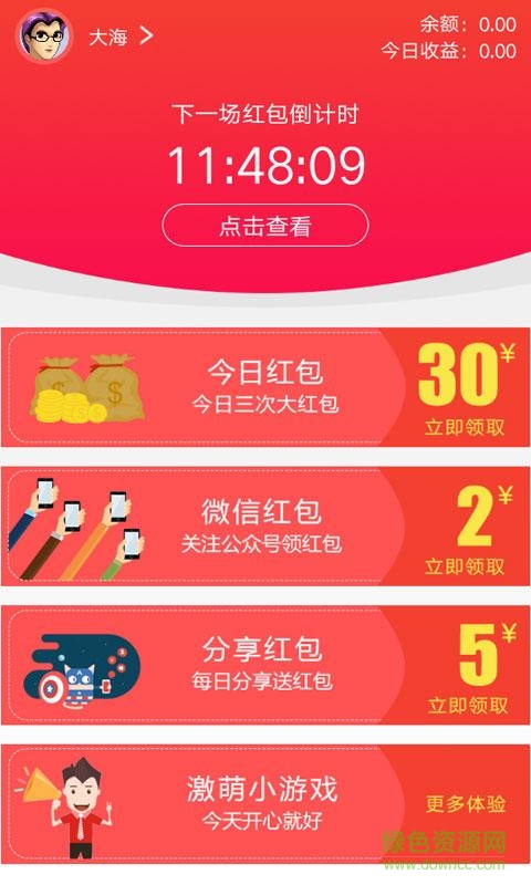 今日红包app是以红包为基础衍生出各种红包玩法的天天红包娱乐工具。让你每天都淋红包雨,随时随地捡红包,每日红包到了一定金额即可兑换成现金。还在等什么,欢迎来绿色资源网下载。