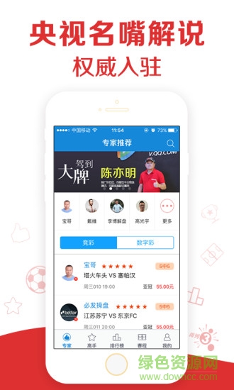 预测帝是一款基于比赛的互动交流平台,前世界足球先生候选人宫磊、“足球五要素”创始人宝哥、《足球大赢家》头牌专家波叔、国内著名足球教练陈亦明、前中国女足新闻官孟洪涛等数十位足球专家强势入驻,专为用户提供足球分析。