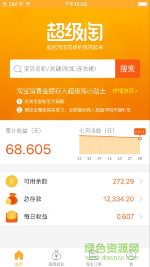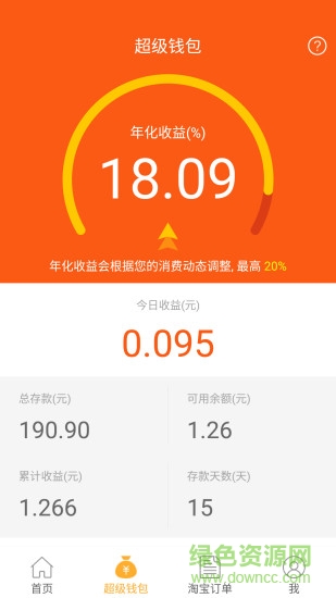 2、钱生钱:超级淘将每一笔网购消费存入钱包(线下消费小票也支持存入),让钱生钱,随时提现!