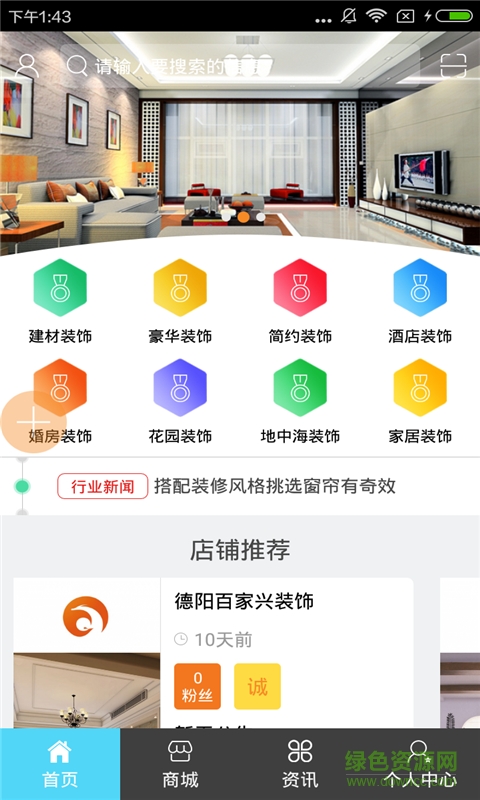 德阳装饰网是一款房屋装饰app应用软件。是一个拥有最新的装饰资讯,最潮流的装饰风格,最靠谱的装饰推荐以及最实用的装饰品购物平台。德阳装饰网为您的家装出谋划策,赶紧来绿色资源网下载吧!