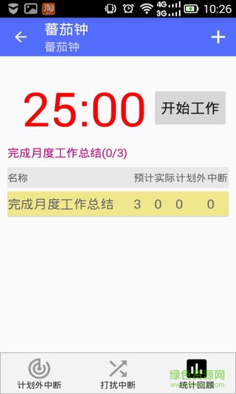 2、番茄种工作法:支持计划外中断、打扰中断和时间段配置,以及统计回顾等
