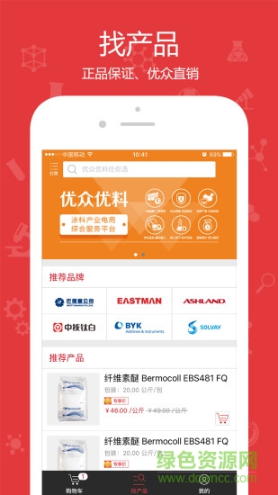 优众优料手机版是一款专为涂料企业服务的应用客户端,在这里用户可以随时了解到最新的涂料信息,及时采购自己需要的涂料产品,方便快捷,操作简单,还能在线和企业沟通,解决用户所需。欢迎有需要的朋友随时来绿色资源网下载,还有更多产品优惠活动等你来体验。