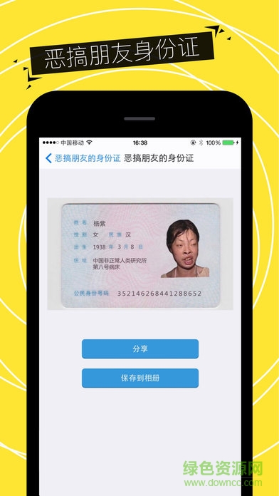 装a神器苹果版能够制作有趣的图片,如明星举牌照,鹿晗举着“这是我的女人,你没戏了”是不是很有趣,将杨紫的身份证P上一个杀马特头像,是不是很惊奇?