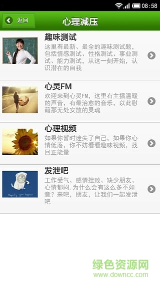 读心宝典手机版是一款为用户提供正规心理咨询的手机app,很多时候我们自己内心有些事情无处宣泄,也没办法向自己的亲朋好友诉说,这款软件会有相近的案例给你一些心灵上的启发和安慰,一个个触动心灵的故事希望能够给你一些宽慰,有需要的朋友快来绿色资源网站下载吧!