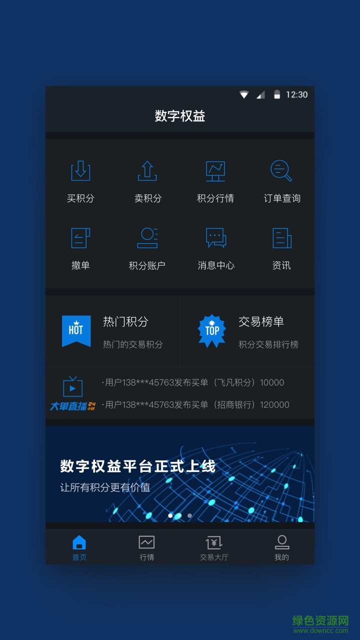 4.通过积分交易大厅查阅所有积分的成交行情。